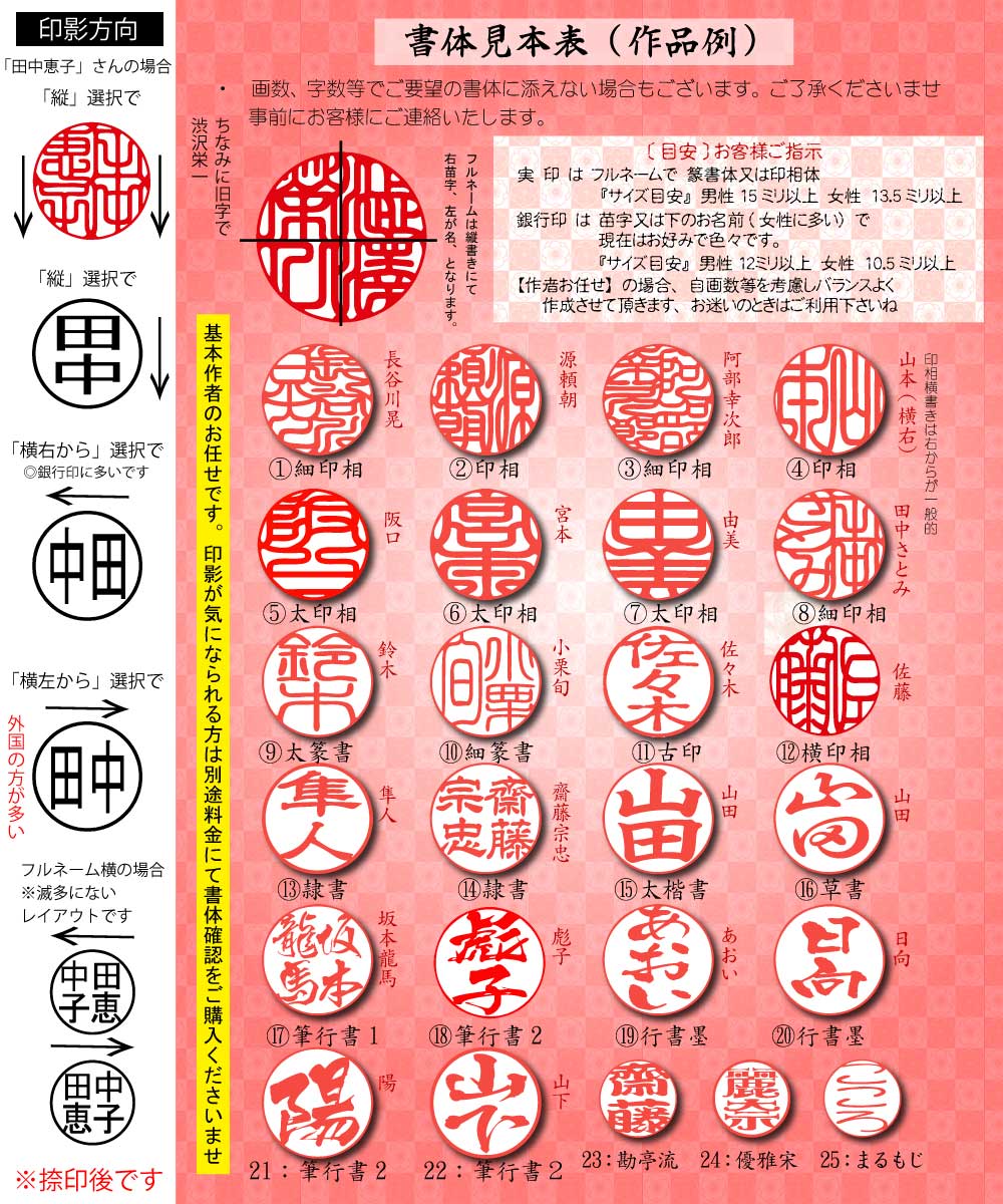 縁起が良く印影の判読が難しい為、防犯上、実印などに適した書体です。